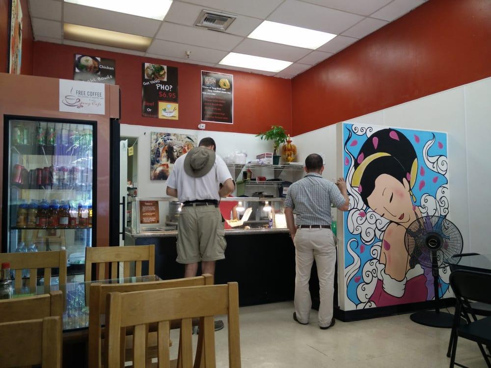 Awesome Sauce! okay first off I was in a bad mood not finding what I needed in Fulton Mall. Tired and hangry I came across Yang Cafe and they did not disappoint! The place is adorned with great color and artwork (even a super sayan Goku but hey gotta represent those asian roots ya know), easy to read menu, and the staff (two cool dudes) were great! friendly, helpful if you had any questions about the food, awesome attitude, and full of smiles. Now the food... it was honestly very good. In my opinion better than any Pho/Vietmanese shop I've been to. Today I had the Beef Laab and a Thai Tea (blended) I would have had the Boba but they were out. The Beef Laab was very flavorful with the mint, onion, and obviously beef. The Thai Tea on the other hand to me was not so good, I will definitely be trying the other flavors though. All in all I would have given Yang Cafe four stars but the price for their delicious food put me over the top. Congrats Yang Cafe you have delivered on hell of a first impression, I hope you can keep up because I'm bringing, 'The Group' we'll be there this Friday 06/10/2016 expect anywhere from 6-11 people between 11-12. Again congrats and I wish you all the best Yang Cafe, see you Friday.